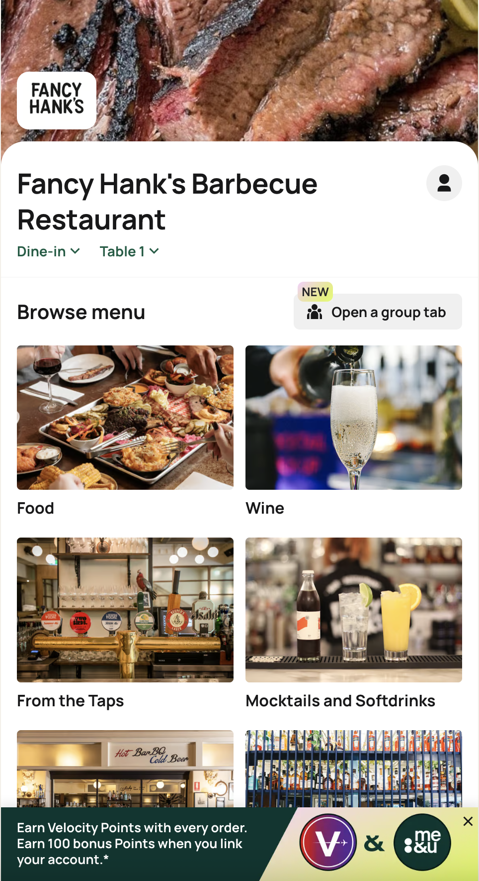 For Pay-at-End group tabs, the tab owner who pays earns the Points as long as they've linked their Velocity Frequent Flyer membership to their me&u account.