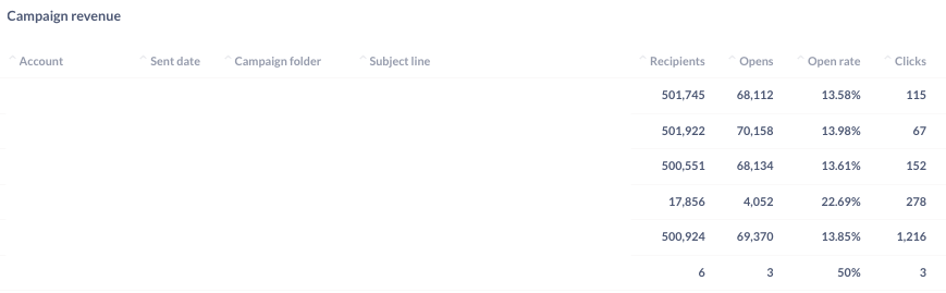 This section shows the impact for each campaign sent within your selected date range.