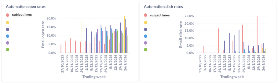 Track engagement trends across your automations over time.