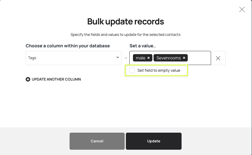 - To update more than one field at a time, click Update Another Column