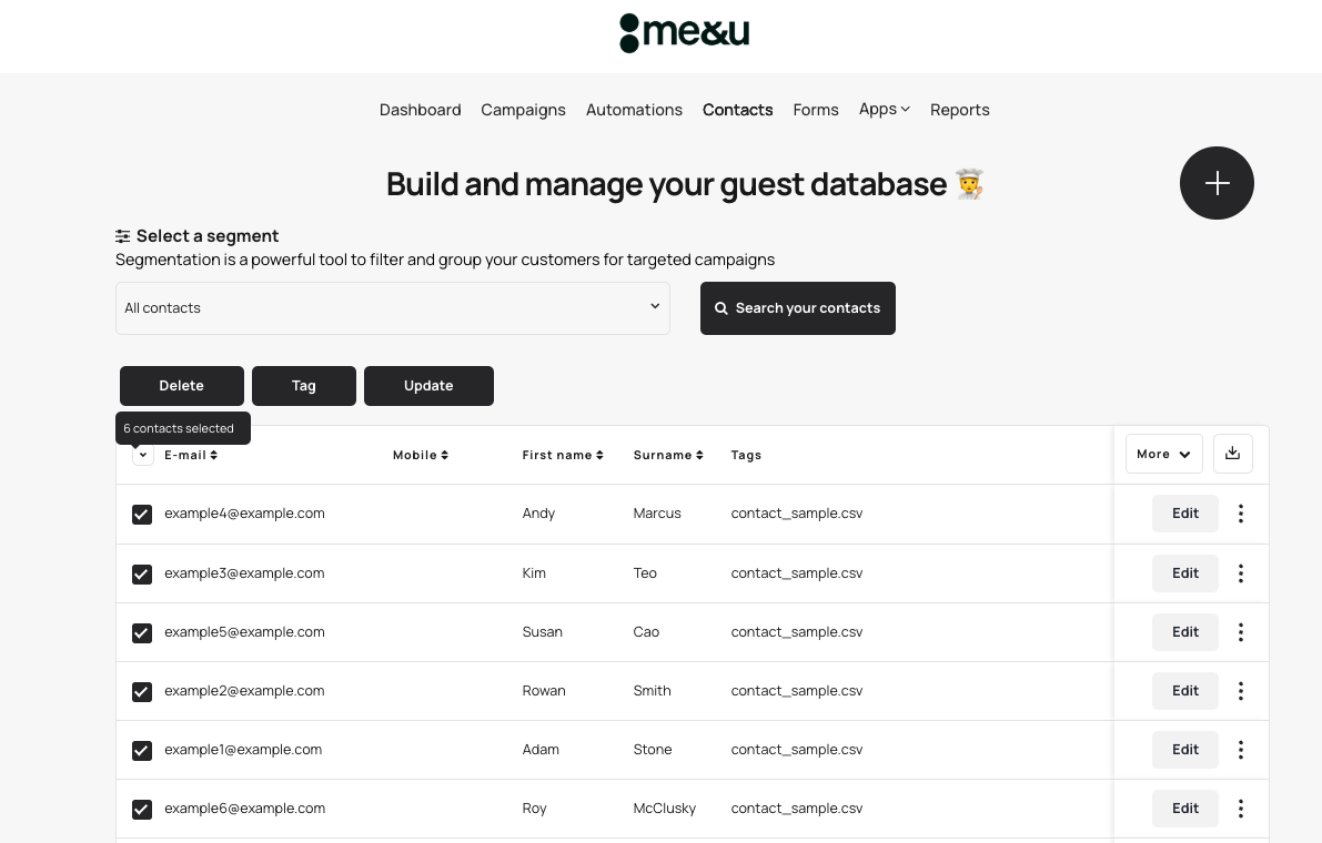 Tags are a great way to segment and organise your database — for example, tagging contacts who attended a specific event or came through a particular campaign.