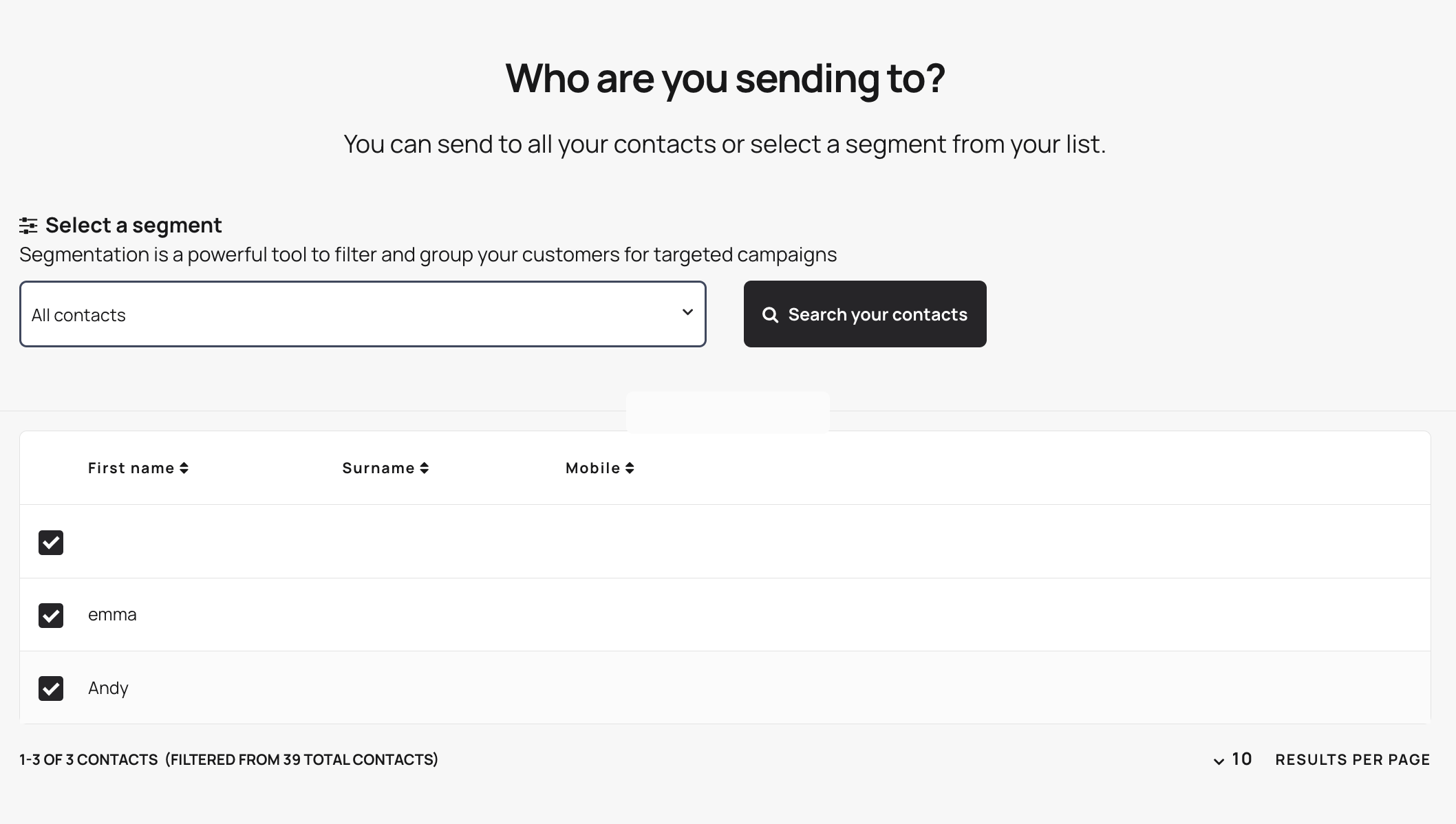 - Click Search your contacts to preview the list of recipients with their mobile numbers