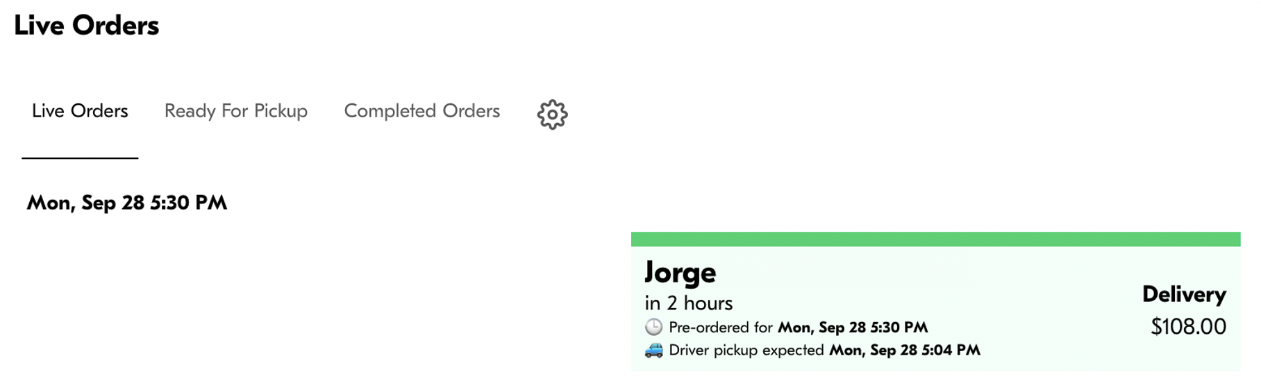 - The order appears on your Live Orders screen.