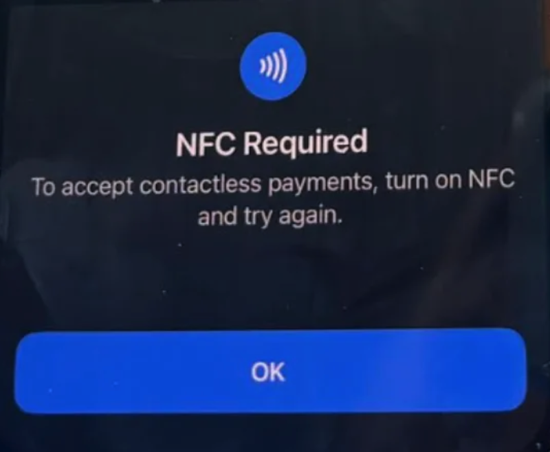 Your device’s NFC (Near Field Communication) is turned off, which is needed for contactless payments.