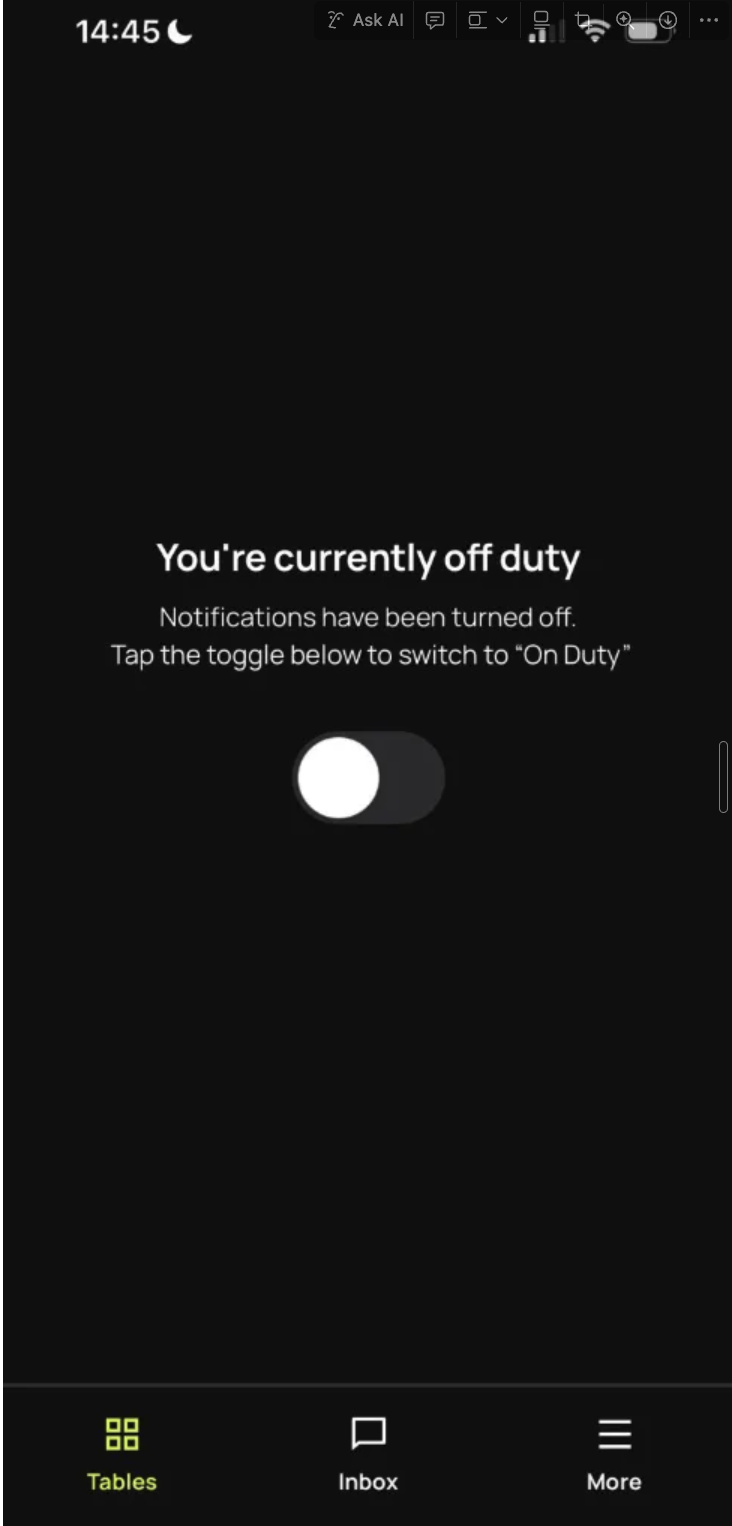 If Crew is marked as “Off Duty”, notifications will be paused until you switch back to “On Duty.”