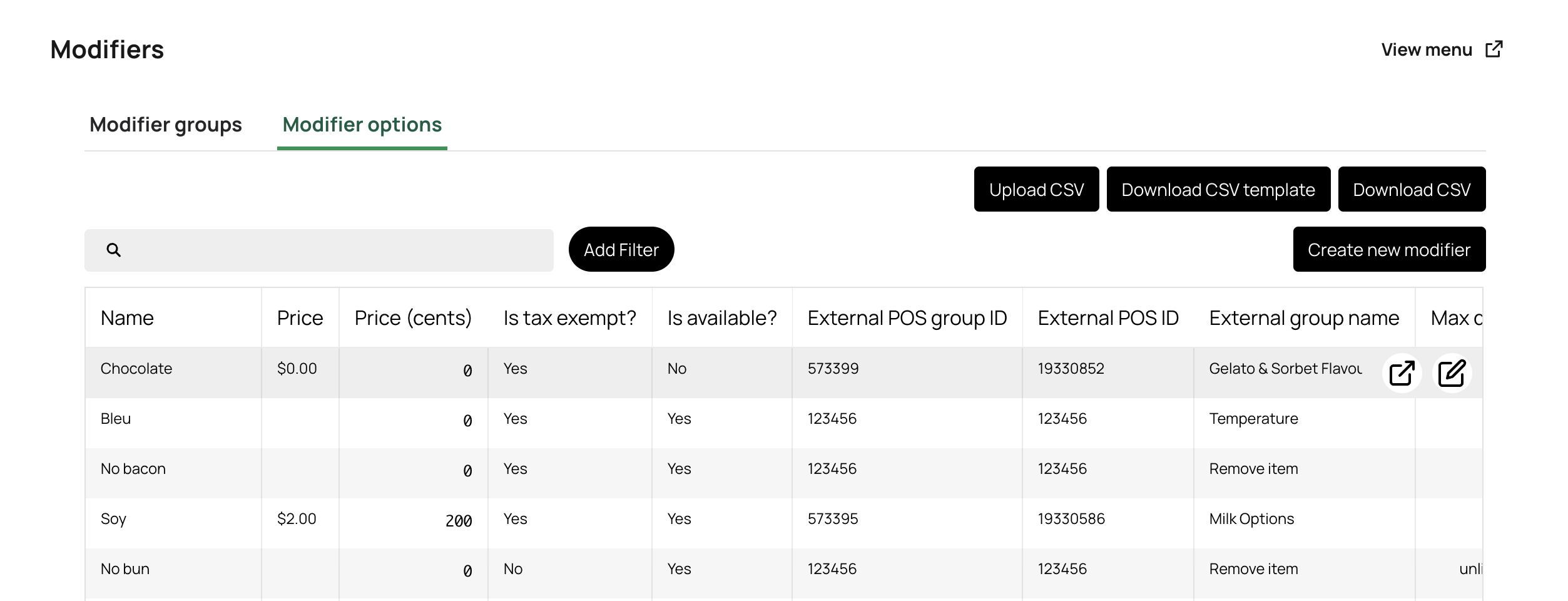 For more information on Modifiers and modifier groups, please see Creating and managing modifiers